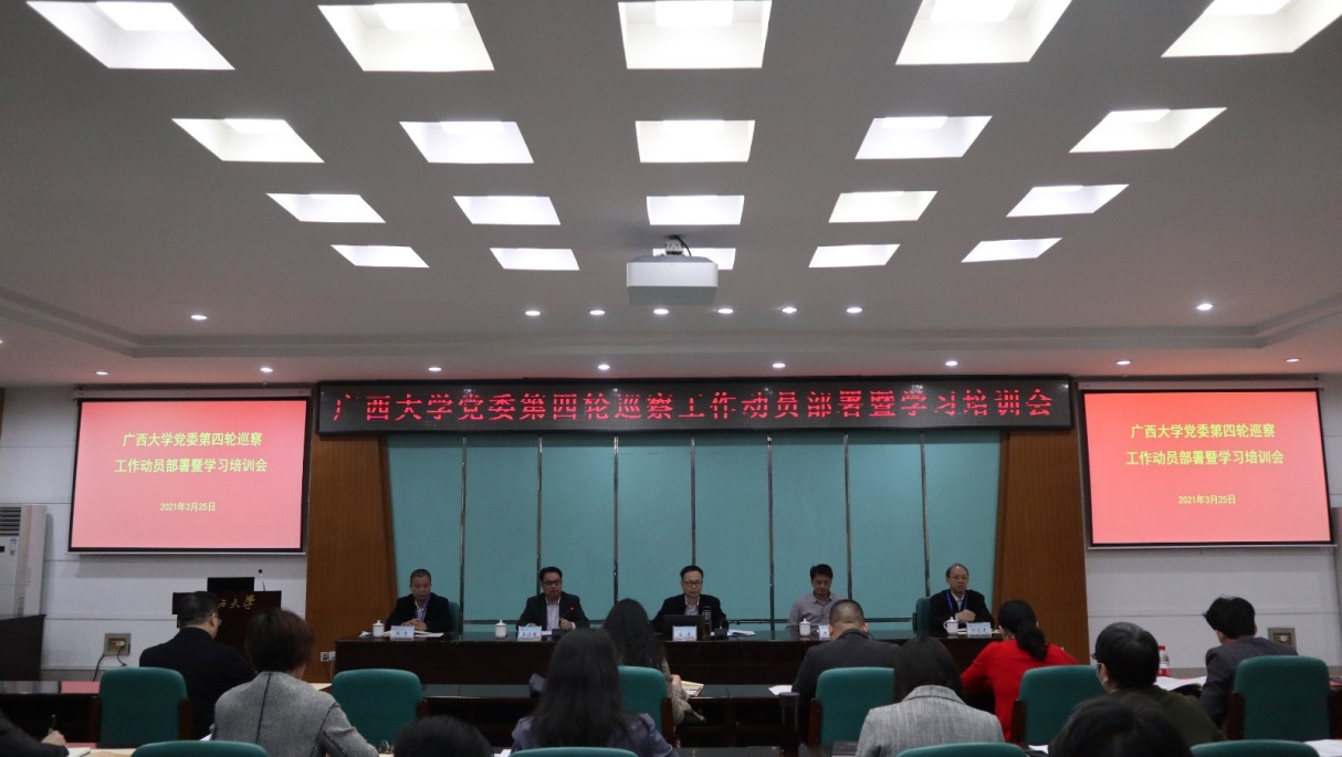 3月25日上午,按照太阳成集团tyc151cc关于巡察工作的统一部署,太阳成集团tyc151cc第四轮巡察工作动员部署暨学习培训会在君武馆第二会议室召开。太阳成集团tyc151cc常委、纪委书记吕逸出席并作动员讲话及业务培训,太阳成集团tyc151cc常委、组织部部长冼季夏在会上宣读《关于第四轮巡察工作人员授权的决定》。第四轮巡察组全体成员、巡察办工作人员参加会议。